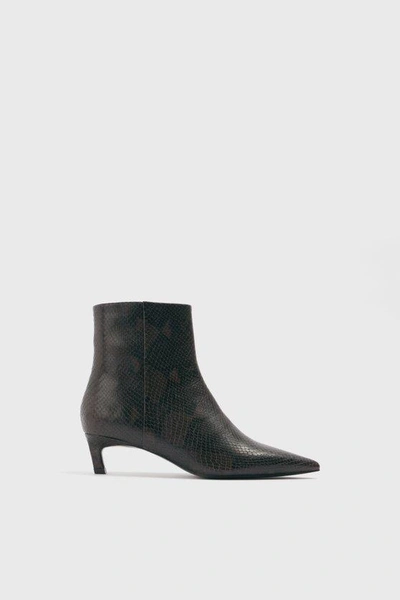 Для холодов рассмотрите ботфорты и ботильоны — небольшой каблук в сочетании с хищным паттерном будет смотреться ярко, как вишенка на простом коктейле, и позволит развеять скуку в любом повседневном образе. И, кстати, питон не обязательно должен быть ярким — обратите внимание также на модели из однотонной кожи, имитирующей змеиную. В шоколадном, базовом черном или оттенке спелой вишни — такие варианты будут смотреться сложно, элегантно, дорого, и главное — их нетрудно интегрировать в любой образ (читайте также: Как ухаживать за обувью в межсезонье: 4 главных правила).