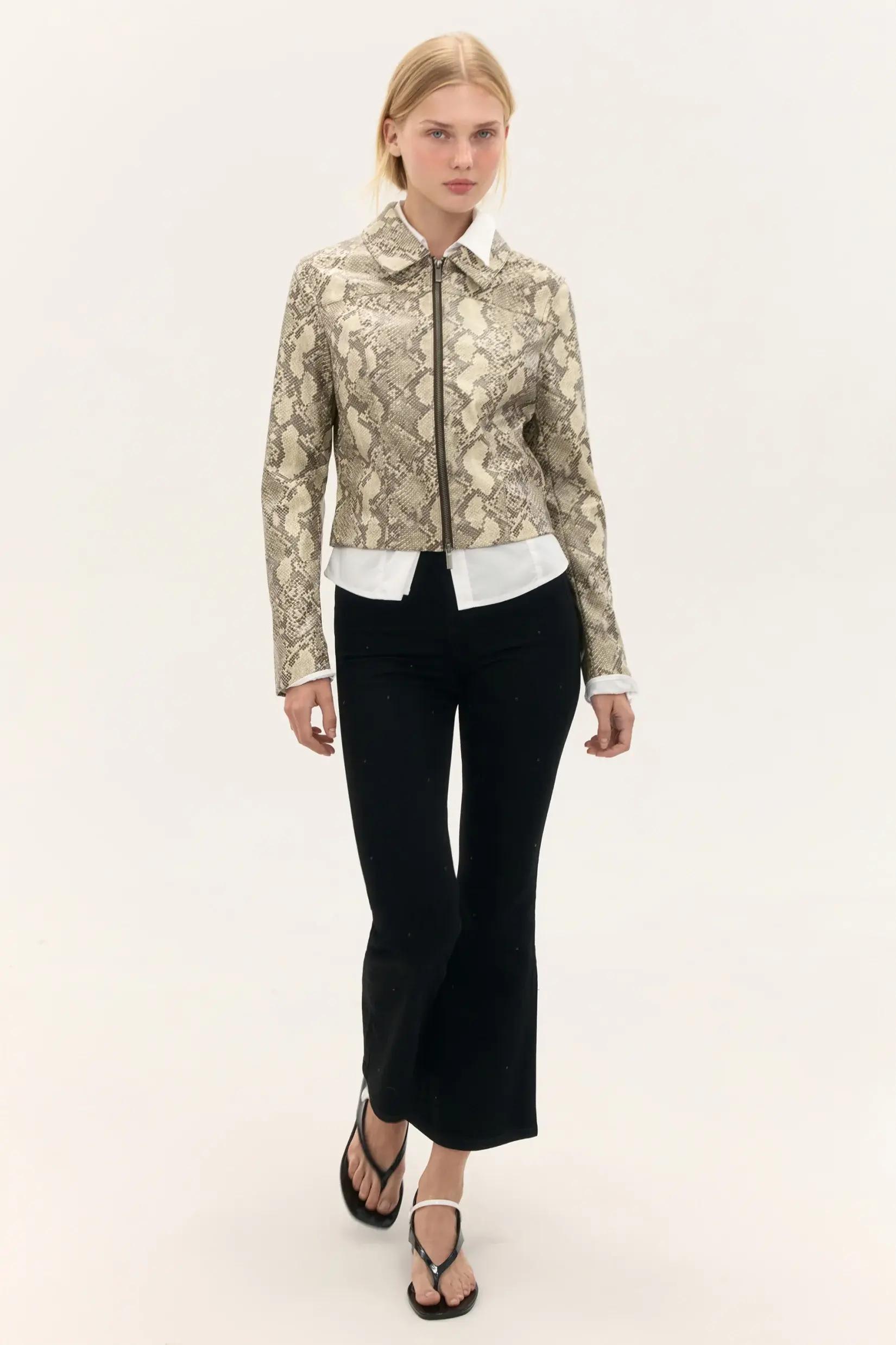 Следующая базовая вещь, на которую покусился питон — бомберы, и в сезоне 2025-26 советуем обратить внимание на объемные варианты с резинкой снизу и минимумом карманов, которые комфортно уравновесить облегающим низом.