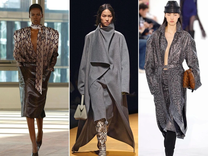 Несмотря на то, что нам по-прежнему нравится будить в себе змеиное начало, от броских, экзотических паттернов нулевых фешн-эстетика ушла далеко. Даже в этом тренде дизайнеры ставят на спокойные тона и приглушенный монохром. Флагман змеиного принта сегодня-серо-бежевый питон. Он база для сложных комбинаций, и одновременно яркая краска, которая позволяет добавить перчинки в любой простой образ. Все зависит от стилизации вашего образа.