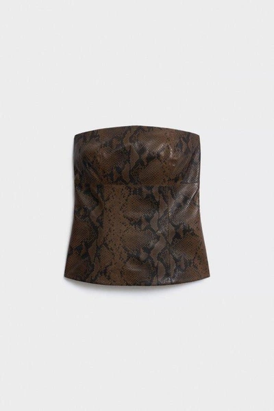Надев корсет поверх белой сорочки вы получите интересный, но не слишком откровенный образ в офис, того же эффекта добьетесь, если сочетать базовый трикотажный топ с кожаными брюками или юбкой. Исключения составляют только платья — их лучше подобрать в спокойной трикотажной или шифоновой ткани. Платье из кожи, да со змеиным паттерном — дерзкое комбо, которое подойдет для вечеринки, но в офис станет модным, но слишком провокационным вызовом. (читайте также: Жакет с воротом-стойкой — самая трендовая модель осени 2025).