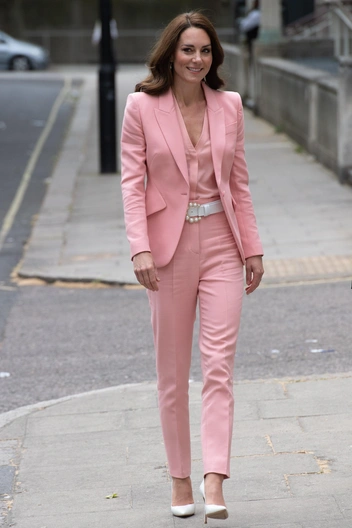 Потрясающий наряд для Кейт придумал ее любимый дизайнер Александр Маккуин (читайте также: «Любимый бренд: самые роскошные выходы герцогини Кейт в Alexander McQueen»). Принцесса, в отличие от Летиции, которая надела под костюм белую футболку, будто не могла насытиться пастельным розовым: блузка под блейзером была в той же цветовой гамме. Только жемчужно-белый пояс и такого же цвета туфли на высоком каблуке с острым носом выбивались из всего ансамбля. Несложно было заметить, как нежный розовый омолодил и без того свежо выглядящую Уэльскую, которой в этом году исполнился 41 год.