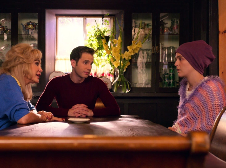 Бабушка Инфинити (по совместительству ее сиделка) – Дасти (Джессика Лэнг) тоже появилась будто бы прямиком из прошлого, где царила мода на парики, легинсы с животными принтами и сильно растянутые свитера, свисающие с одного плеча. Режиссеру было важно подчеркнуть, что ухаживая за внучкой и не имея толстого кошелька, Дасти просто застряла в прошлом и не имеет возможности гнаться за модными новинками. Она очень ярко и вызывающе красится (красные губы и синие стрелки – обычное дело), носит массивные позолоченные украшения, крупные солнцезащитные очки и делает невероятный начес.