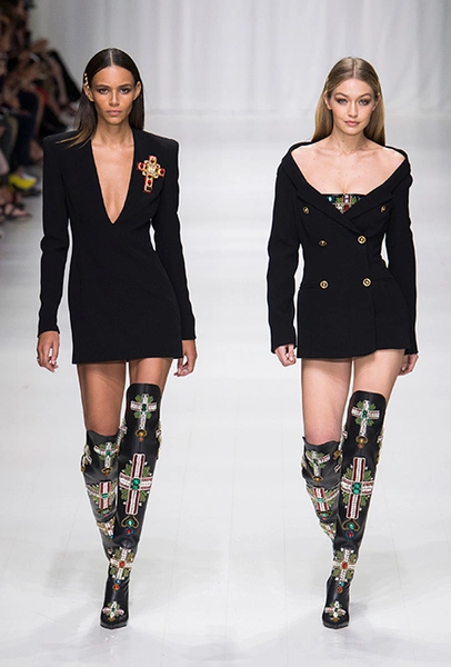 Завершился показ совсем уж очевидной отсылкой к 90-м – на подиум в платьях, напоминающих жидкое золото, вышли Наоми Кемпбелл, Клаудиа Шиффер, Карла Бруни, Хелена Кристенсен и Синди Кроуфорд. Лучшего способа почтить память брата Донателла найти бы не смогла.