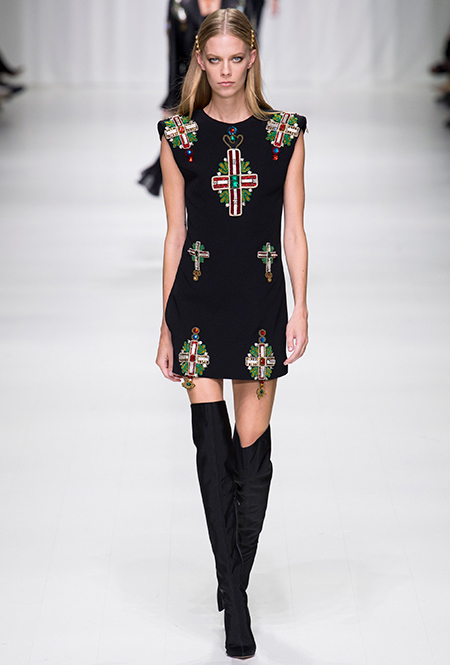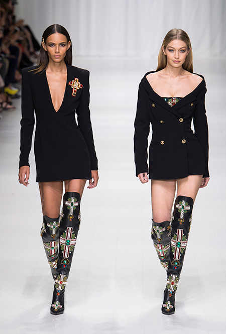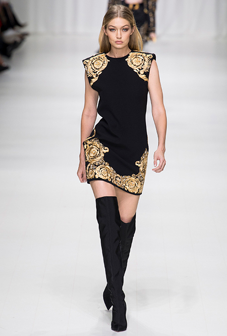 Завершился показ совсем уж очевидной отсылкой к 90-м – на подиум в платьях, напоминающих жидкое золото, вышли Наоми Кемпбелл, Клаудиа Шиффер, Карла Бруни, Хелена Кристенсен и Синди Кроуфорд. Лучшего способа почтить память брата Донателла найти бы не смогла.