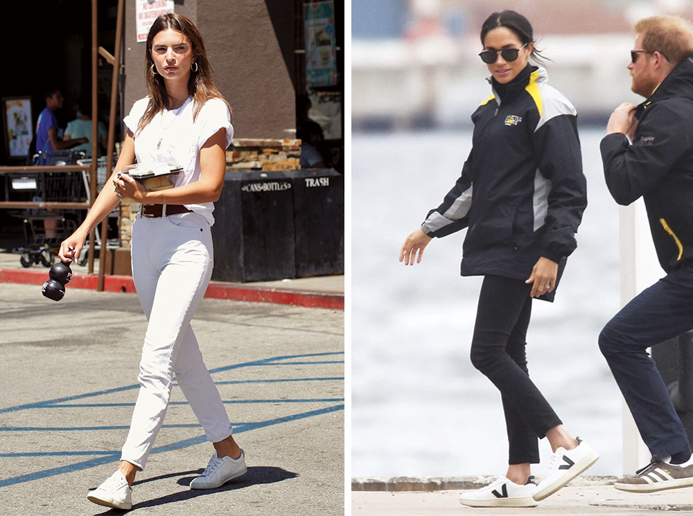 Что может быть общего у герцогини Меган, которая теперь стала приверженцем лаконичного и сдержанного стиля, и Эмили Ратажковски, любительницы экстремальных мини и откровенных декольте? Казалось бы, кроме мировой популярности, совершенно ничего. За исключением пары кроссовок Veja. В них герцогиня Меган отправлялась в тур по Австралии и Океании, произведя настоящий фурор и заметно повысив продажи бренд. И в таких же Эмили Ратажковски регулярно совершает променады по Нью-Йорку вместе со своей любимой собакой (и парой-тройкой вездесущих папарацци). Французский бренд Veja уже давно завоевал себя армию преданных звездных поклонниц, среди которых, помимо Меган и Эмили, значатся Эмма Уотсон, Марион Котийяр, Хлоя Морец. И на этом один из самых многообещающих брендов современности явно останавливаться не планирует.