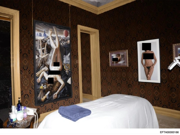 На отдельных кадрах присутствуют несовершеннолетние, много отредактированной порнографии и жутких видеозаписей с частного острова Эпштейна, где молодые женщины танцуют, сидят или лежат в постели. Иногда они появляются раздетыми или в непристойных позах, их лица и тела скрыты черными рамками (в целях защиты жертв), хотя встречаются и отдельные фрагменты, где лица все же видно. Одна из сцен, в частности, происходит прямо в кабинете финансиста, где молодые женщины танцуют для него, а на углу стола — как бы иронично это ни звучало — лежит тест на отцовство.
