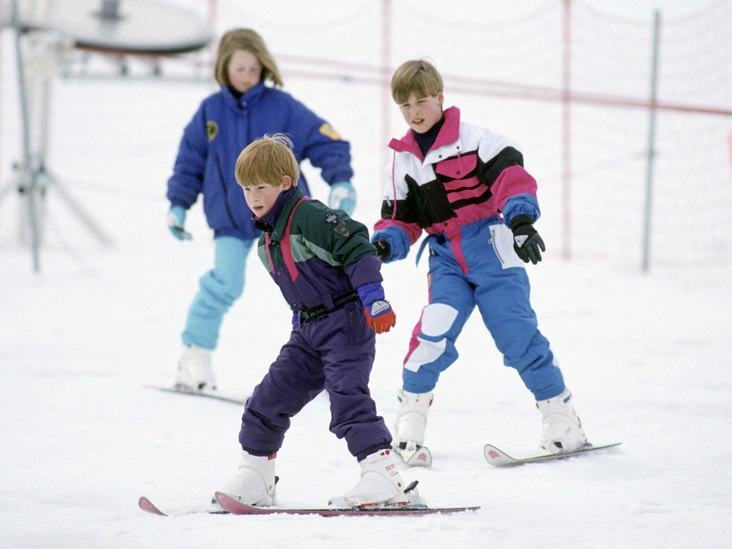 На этом снимке будущий наследник престола и его младший брат запечатлены на горнолыжном склоне в австрийском Лехе. Многие из Виндзоров славятся любовью к зимним видам спорта, и Уэльские часто уезжали на каникулы на один из европейских лыжных курортов (часто в компании Йоркских, так что братья проводили много времени со своими кузинами — принцессами Беатрис и Евгенией).