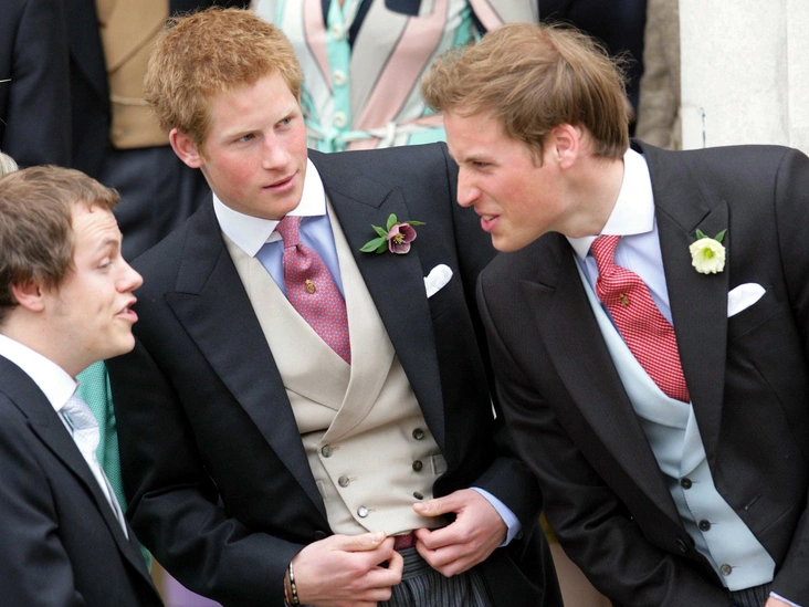 Принцам было нелегко принять тот факт, что их родитель решил узаконить отношения с Камиллой Паркер-Боулз, которую весь мир считал «разлучницей» в истории Уэльских. Однако, познакомившись с возлюбленной своего отца и оценив ее многочисленные достоинства, Уильям и Гарри отнеслись к этой свадьбе со всей серьезностью. Здесь они запечатлены за разговором со своим сводным братом Томом Паркер-Боулзом, а еще в тот же день у них появилась сводная сестра Лора.