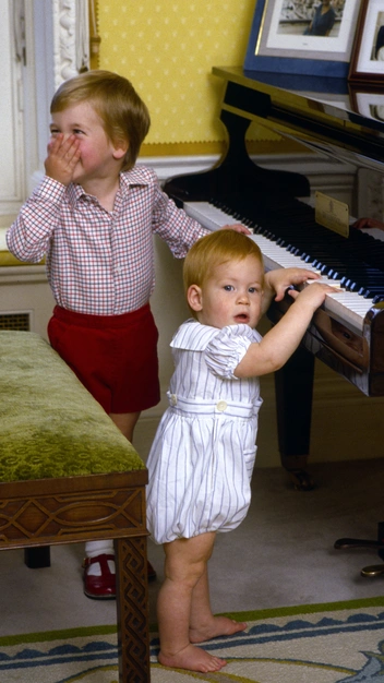 Знаменитая съемка семейства Уэльских, которую устроили в Кенсингтонском дворце, известна прежде всего по кадру, на котором маленькие принцы сидят за роялем вместе со своей мамой, облаченной в голубое платье. Однако в тот же день фотографы запечатлели еще несколько любопытных моментов. Например, тот, когда Уильям не может сдержать смех, дурачась около музыкального инструмента. Или тот, когда Чарльз в шутку пытается посадить маленького Гарри на плечи его старшего брата.
