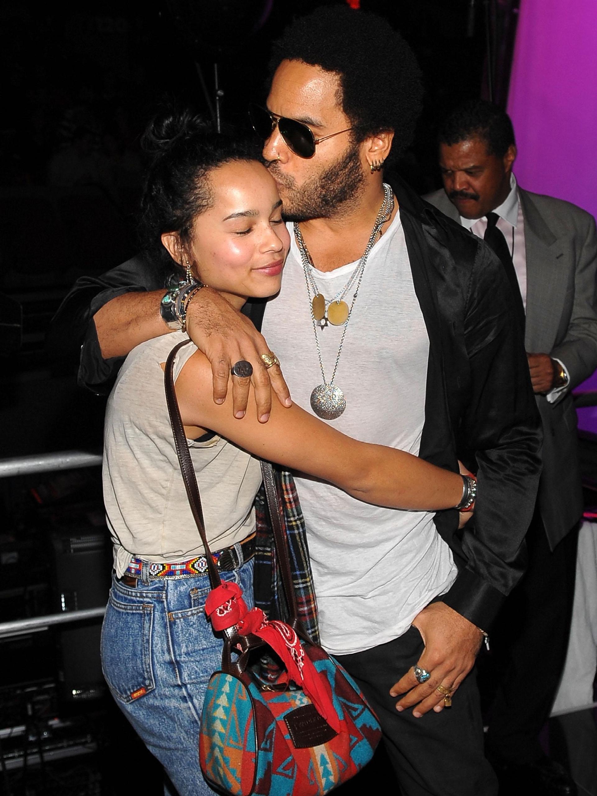 Зои Кравиц со своим отцом, музыкантом Ленни Кравицем, на концерте, посвященном 25-летию Зала славы рок-н-ролла, 30 октября 2009 года