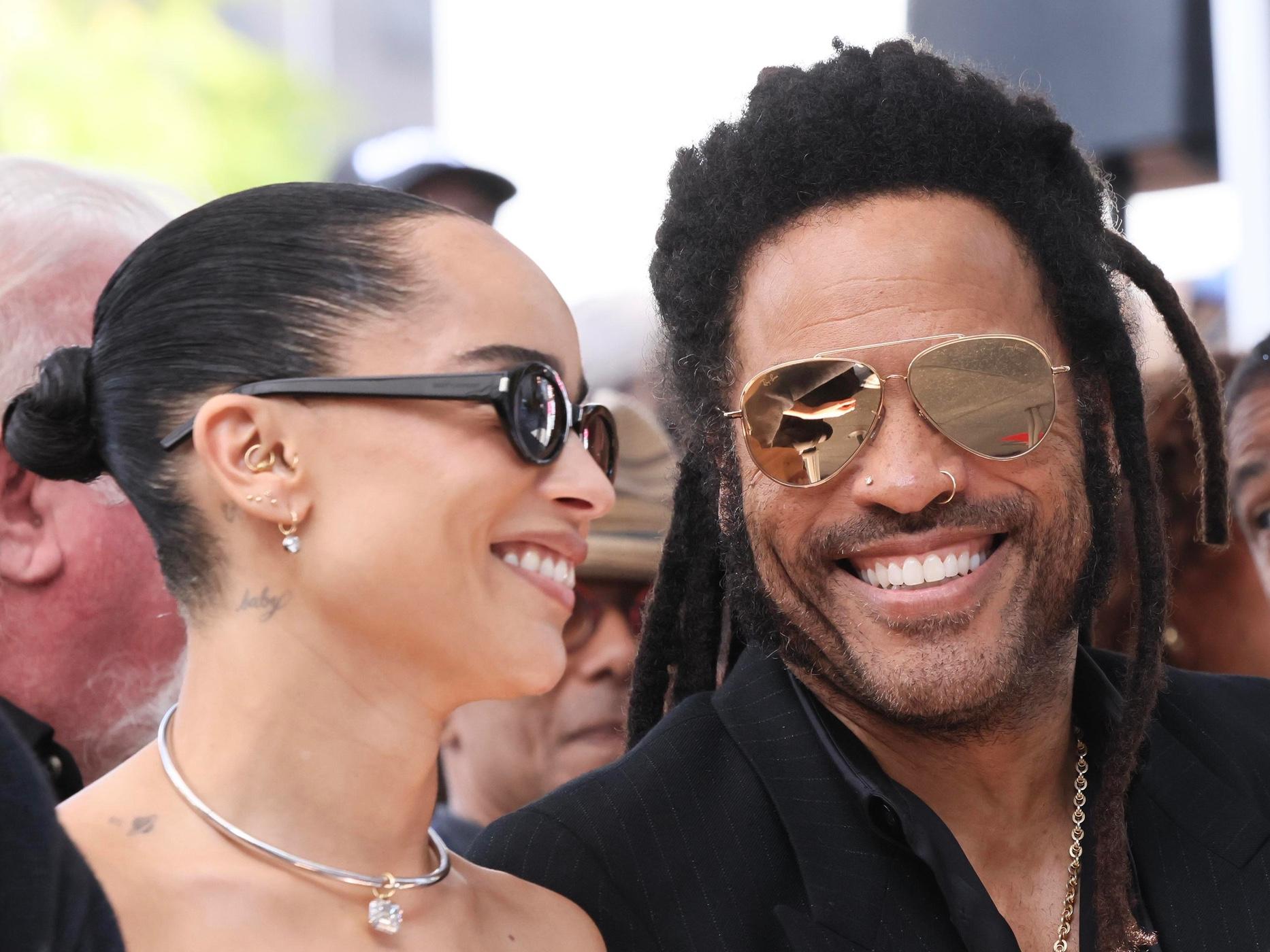Зои Кравиц сопровождает отца, музыканта Ленни Кравица, на церемонии открытия его звезды на Голливудской Аллее славы, 12 марта 2024 года