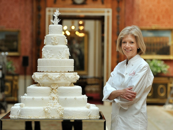Известный мастер тортов Фиона Кэрнс шутит, что начала изготовление торта еще в феврале, чтобы поспеть к концу апреля, говоря о «бессонных ночах», которые ей пришлось провести в трудах. По словам Фионы, пара хотела традиционный фруктовый торт. Ей прислали кусочек кружева с подвенечного платья, чтобы команда кондитеров могла повторить мотив на торте. Невеста хотела видеть десерт в кремовом и белом цветах и просила непременно воздержаться от золота или блесток. Пожелания Кейт были исполнены. В течение недели, предшествующей свадьбе, караван фургонов с фрагментами свадебного торта, расфасованных по 40 коробкам, проехал более 150 километров от фабрики Фионы до Букингемского дворца.