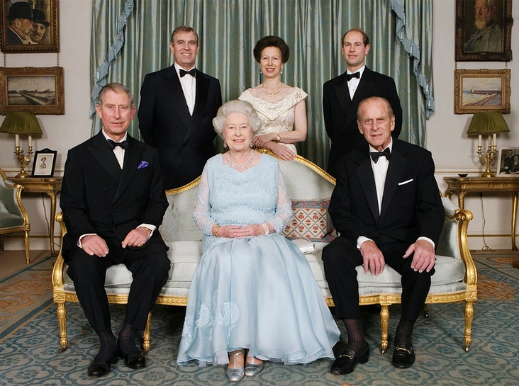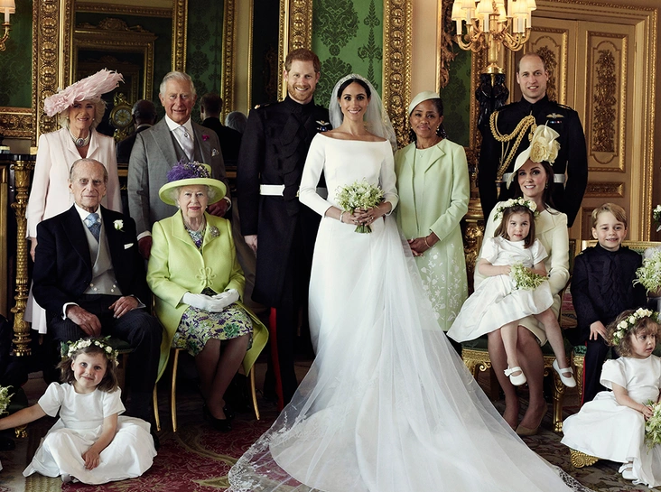 Разумеется, поза Филиппа (немного в сторону от Сары) уже стала предметом спекуляций: мол, принц инстинктивно отстранился от экс-невестки, которую презирает. Но это, действительно, не более, чем домыслы: если внимательно изучить другие официальные фотографии, где герцог Эдинбургский сидит, станет понятно, что посадка с небольшим наклоном вправо – его фирменная поза. Например, на фото свадьбы Меган и Гарри герцог, получается, слегка отклонился от собственной жены.