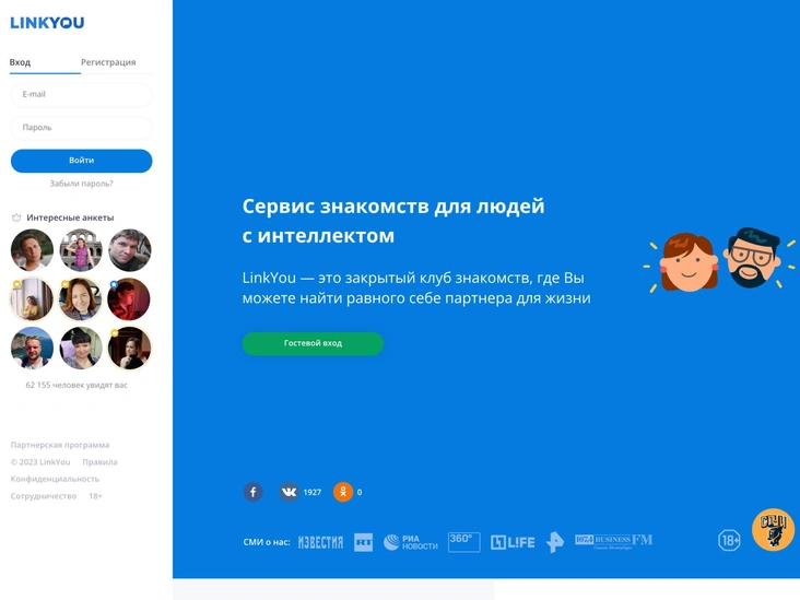 Позиционирует себя как сайт знакомств для людей с интеллектом. LinkYou — сервис для поиска второй половинки, но и друзей и даже деловых партнеров. Разработчики сайта знакомств стремятся поддерживать максимально позитивную атмосферу, исключая фейковые аккаунты, насильственное и грубое общение, предложения мимолетного интима (читайте также: Тонкий флирт: 5 способов намекнуть коллеге, что он вам нравится).