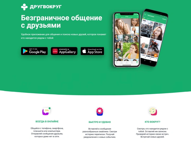 Бесплатное приложение для поиска друзей и второй половинки в России и странах СНГ. Оно синхронизируется с VK, что удобно для тех, кто привык общаться в сообществах этой социальной сети. Платформа «ДругВокруг» удобна тем, что показывает геолокацию пользователей, а это в свою очередь помогает быстрее найти людей для знакомств. Есть опция подписки для доступа к более широким возможностям.