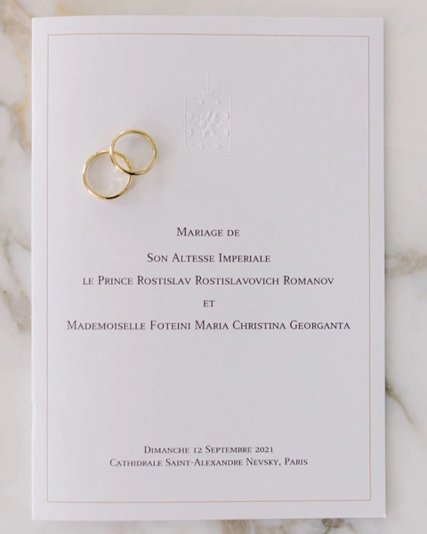 Осенью 2021 года женились не только представители британской монархии. Ростислав Романов — праправнук Великой княгини Ксении Александровны, сестры последнего российского императора Николая II — тоже попрощался со статусом холостяка (конечно, формально он женился в 2019 году, но религиозной церемонии тогда не было). 12 сентября Ростистав обвенчался со своей избранницей, Фотини Георгантой, в парижском кафедральном соборе Александра Невского. Они обменялись кольцами, сделанными российским ювелиром Петром Аксеновым, после чего устроили роскошный прием в соседнем отеле, куда гости прибыли во фраках с белоснежными жилетами и бабочками. Таким образом, и молодожены, и само мероприятие вполне соответствовали статусу одного из величайших императорских домов в истории.