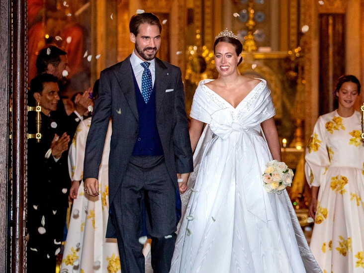 Греческий принц Филиппос также решил подчеркнуть величие своей династии, организовав церемонию венчания в Кафедральном Соборе в Афинах — в городе, в котором королевская свадьба не праздновалась уже 57 лет (с тех пор, как в 1964 году там поженились Король Константин II и Королева Анне-Марие). Несмотря на то, что его брак с Ниной Флор уже был зарегистрирован в прошлом году, пара решила обновить свои клятвы, на этот раз — по религиозным канонам. Невеста предстала в элегантном атласном платье авторства Вирджини Виар и Дома Chanel с бантом на груди и огромным шлейфом, дополнив образ драгоценной бриллиантовой тиарой из сокровищницы греческого королевского двора. Среди гостей церемонии был весь цвет европейской аристократии — представители Греческих, Датских, Испанских, Британских Королевских Домов, Княжеского Дома Монако и Ганноверской династии.