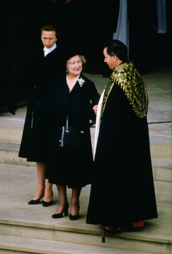 В 1957 году официальный биограф королевы Марии Текской Джеймс Поуп-Хеннесси посетил чету Виндзоских в их загородном доме Ле Мулен де ла Тюильри (Le Moulin de la Tuilerie), и ему бросилось в глаза, как меняется выражение лица Уоллис при одном только упоминании о королеве-матери. «Это было очень неприятно видеть и показалось мне чем-то вроде безумства», — отмечал он. Герцог же, говоря о невестке, заметил: «За этим мощным обаянием находится проницательная, коварная и совершенно беспощадная женщина». Затем с улыбкой добавил: «Но, конечно, вы не можете это процитировать».