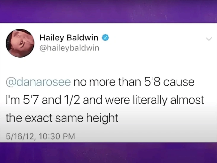 Помимо этого Дана демонстрирует твиты, отправленные ей Хейли, в которых последняя обсуждает рост Бибера, сравнивая его со своим, и делает предположение, насколько он еще может вырасти. Словом, ведет себя как настоящий «суперфанат» — делает вывод автор расследования. Если этого все еще недостаточно, то в архиве сохранилось и другое доказательство: видео, созданное Даной вместе с другими поклонницами под песню Call Me Maybe — своеобразный оммаж ролику, записанному Джастином и Селеной. Кто мелькает в кадре? Конечно, Хейли.