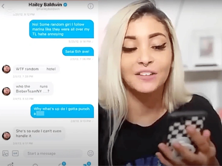 По словам девушки по имени Дана, которая в годы «Бибер-лихорадки» вела популярный фан-аккаунт Джастина (около 200 тысяч подписчиков), Хейли регулярно писала ей в личные сообщения. Ее интересовали мельчайшие детали — от маршрутов передвижения певца до названия отеля, в котором он остановился. «Целью Хейли было пересекаться с Джастином Бибером как можно чаще в надежде, что он однажды рассмотрит ее как потенциального партнера», — утверждает Дана. Хотя оригинального сообщения с вопросом про отель у нее не сохранилось, она настаивает, что оно точно было — но вероятно, в какой-то момент было удалено.
