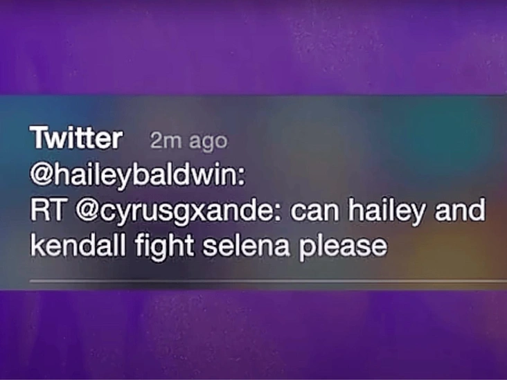 Вскоре в прессу просочились слухи о том, что Джастин скучает по Селене. Их очередное воссоединение было лишь вопросом времени. В ответ Хейли начала ретвитить посты: от намеков на ее возможный роман с певцом — до провокационных сообщений, где пользователи выражали желание увидеть драку между ей самой и Селеной. «Это был тот самый момент, когда поведение Хейли перестает выглядеть, как восторженное и начинает выглядеть как навязчивое, поскольку в течение нескольких следующих лет она, по-видимому, старалась изо всех сил стать более похожей на Селену Гомез в надежде обратить на себя внимание Джастина», — резюмирует автор.