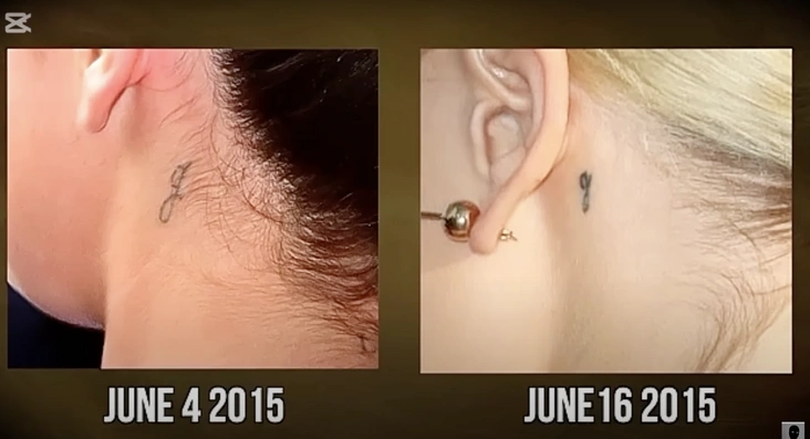 Менее чем через две недели после того, как Селена сделала татуировку с буквой «g» за ухом (в честь своей младшей сестры Грейси), аналогичный символ появился и у Хейли — на том же месте. Правда, по ее словам, «g» была набита в честь дочери ее пастора — Джорджии. И хотя это вполне может быть правдой, практически идеальное совпадение по времени, стилю и даже месту татуировки наводит на неоднозначные выводы.