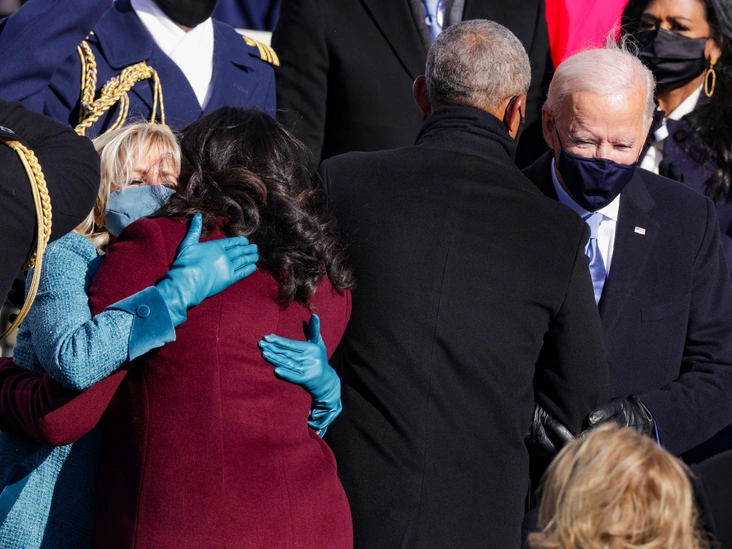 И даже когда Джо Байден присягал на верность своей стране, рядом с ним и Джилл оказались не их последние предшественники по Белому дому, а Барак и Мишель Обама, поддерживавшие пару на протяжении всей президентской гонки.
