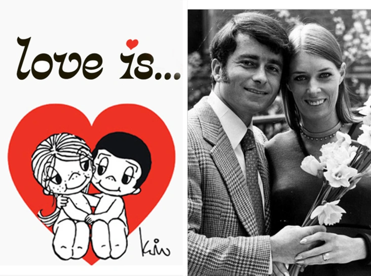 В конце 1960-х культура хиппи была на пике популярности в западном обществе. Ее представители придерживались пацифистских взглядов и воспевали любовь. Именно под влиянием этой идеологии росла новозеландская художница Ким Гроув. Когда ей исполнилось 19 лет, она отправилась в путешествие по миру. А шесть лет спустя Ким обосновалась в солнечной Калифорнии. Однажды она отправилась в лыжный клуб Лос-Анджелеса, где заметила мужчину, при виде которого ее сердце забилось чаще. Роберто Касали — красивый итальянец и успешный инженер — первое время не обращал внимания на молодую и скромную девушку. А Ким стеснялась сделать первый шаг и открыто с ним познакомиться. Вместо этого она начала рисовать на салфетках милые картинки, изображавшие маленькую девочку с веснушками и темноволосого мальчика, которые попадают в забавные ситуации на горнолыжном склоне, и отправлять их Роберто. Каждый рисунок художница сопровождала подписью «Love is…» («Любовь это…»), после которой шла очередная трактовка самого прекрасного на свете чувства.