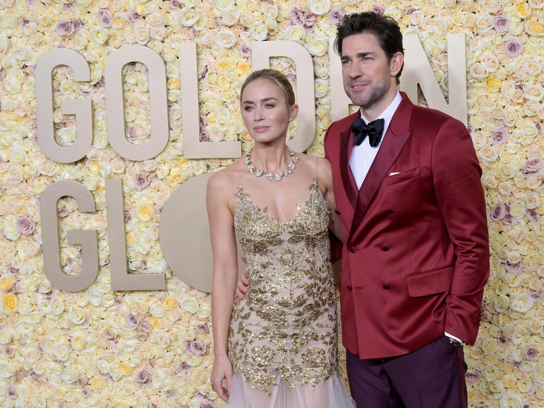 Эмили Блант и Джон Красински выглядели как одна из самых раскрепощенных пар на красной дорожке. Может быть, повлияли и яркий смокинг Джона, и платье из золота Эмили.