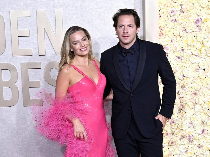 Блистая в образе Барби, Марго прогуливалась по ковровой дорожке со своим мужем и партнером-продюсером Томом Акерли.