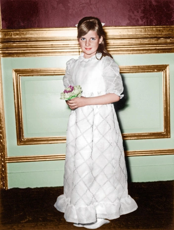 Малышка леди Диана Спенсер изображена на фотографии в возрасте двух лет. Диана была третьей дочерью Эдварда, виконта Альторпа, и Фрэнсис Рот, дочери барона Фермой. У леди Ди также были две старшие сестры леди Сара и леди Джейн, а также младший брат Чарльз Спенсер. Позже отец Дианы стал графом Спенсером и семья переехала в родовое поместье Элторп. Она изображена на фото в возрасте трех лет.