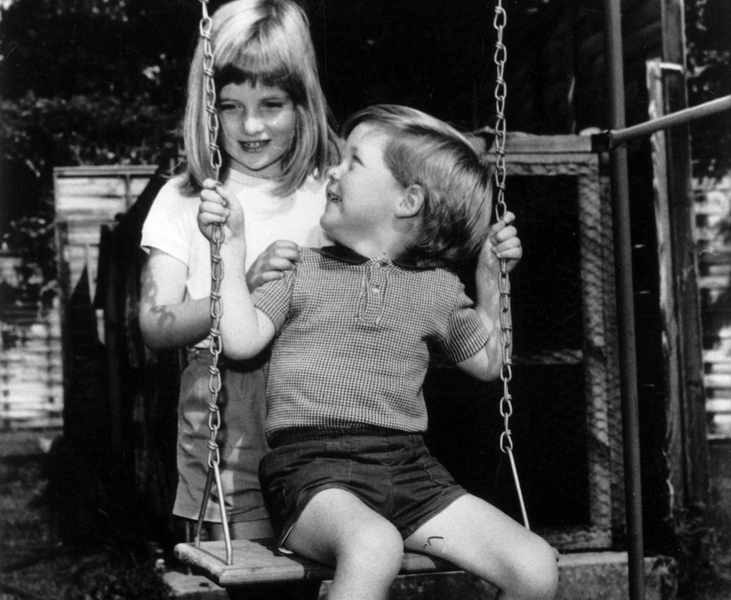 На фото Диана изображена в возрасте шести лет, качающей на качели своего брата Чарльза. Позже принцесса признавалась, что растила младшего брата с любовью и ответственностью, и в какой-то степени заменила ему мать.