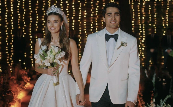 Наивный, но захватывающий сериал о миловидной студентке и своенравном бизнесмене произвел настоящий фурор во всем мире. Фанаты киноленты переживали за отношения упертых героев бесконечные два сезона и были вне себя от радости, когда свадьба Эды и Серкана наконец состоялась. На торжестве не было ни толп гостей, ни пышных одеяний — все прошло достаточно скромно, на современный лад. Невеста произнесла клятву в вечной любви в белом обтягивающем мини-платье с рукавами-фонариками, однотонных босоножках с завязками на невысоком каблуке и кокетливых серьгах-звездочках. Наряд жениха тоже был «невинный» и состоял из белой льняной рубашки и белых брюк (читайте также: Опасные иллюзии: 5 вредных установок о любви, которые нам навязывают турецкие сериалы).