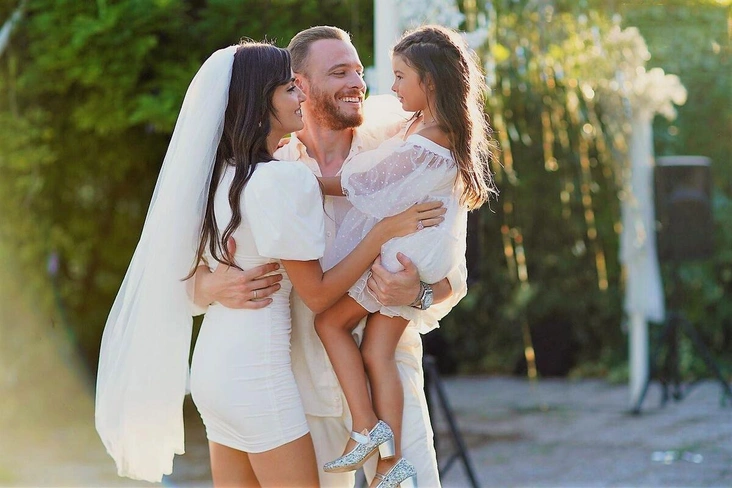 Известный свободолюбивый фотограф и скромная мечтательница прошли длинный путь, прежде чем связали себя узами брака. Их свадебная церемония тоже состоялась на берегу моря и выдалась легкой и очень летней. Улыбчивая Санем надела приталенное платье с кружевной отделкой на тонких бретелях, заплела две косички вокруг пробора и украсила локоны яркими цветами. В руках у невесты красовался нежный, но эффектный букет. Жених, как всегда, выглядел брутально и по-байкерски: он надел черные брюки и жилет поверх белой хлопковой рубашки, но не отказался от привычных аксессуаров. Волосы собраны в пучок, на шее многочисленные цепи, рукава засучены. Такие разные, но в равной степени счастливые.