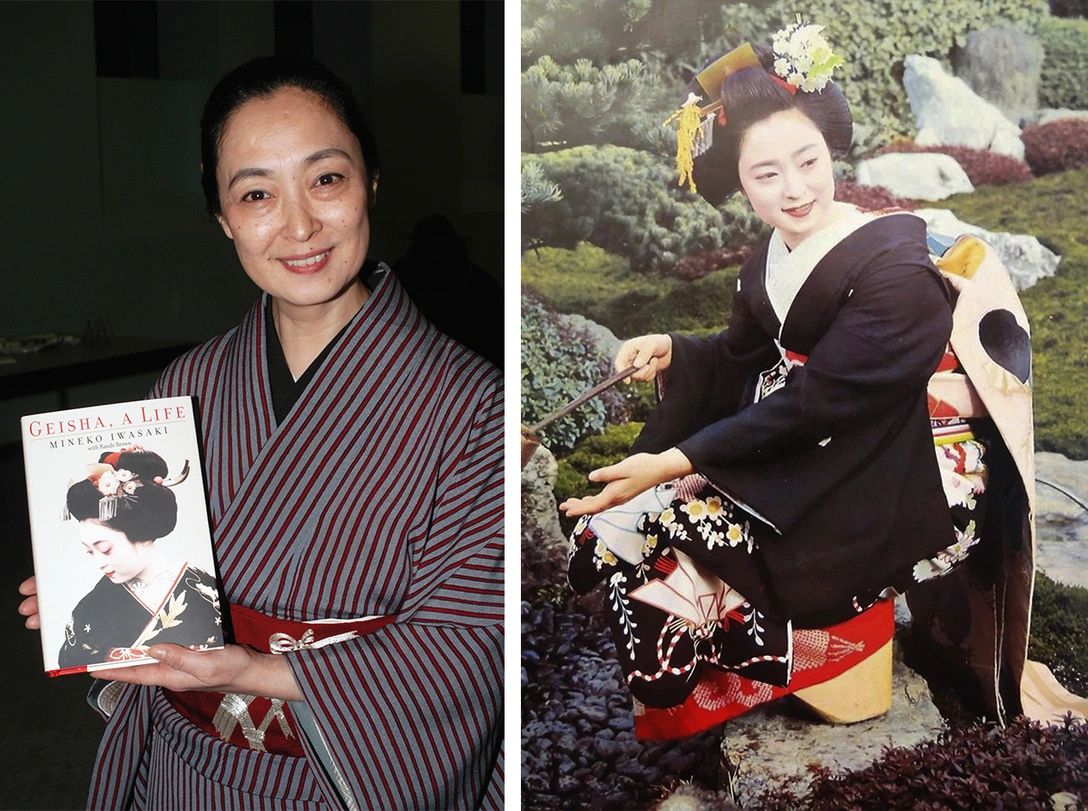 В начале 90-х годов Минэко Ивасаки посетил американский писатель Артур Голден, желавший написать книгу о традициях Японии и культуре гейш. Женщина дала согласие на интервью только с условием полной анонимности, и в ходе беседы откровенно рассказала о нелегкой судьбе японских женщин. Она хотела изменить укоренившийся стереотип о том, что гейши созданы лишь для удовлетворения физических потребностей. Однако ставшие бестселлером «Мемуары гейши» лишь укрепили в сознании людей мнение о легкомысленности данной профессии. Но больше всего Минэко поразило то, что Артур Голден пренебрег их уговором об анонимности и оставил ей благодарность в начале книги. Женщина не стерпела оскорбления и подала на Голдена в суд за клевету и нарушение договора. Ведь, помимо того, что Минэко обрела нежелательную популярность, Артур написал в книге, что девушка продала свою невинность на аукционе. Исход дела был благоприятным для Минэко, она получила публичные извинения от Голдена, а также крупную выплату.