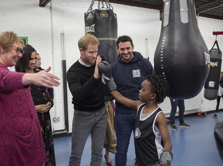 Судя по движениям корпуса Гарри, его широкой улыбке и руке, вытянутой по направлению к детям, Его Высочество стремится к общению с детьми и словно практикуется в роли заботливого родителя. Меган уступает ведущую роль мужу и в то же время показывает свое одобрение и поддержку, положив руку на спину Гарри.