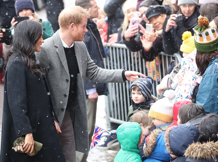 В Бристоле Сассекских встретил снегопад, но это не помешало паре активно обмениваться приветствиями с поклонниками. Самым сердечным, пожалуй, стало общение супругов с группой ребят из учреждения для дошкольников Abbeywood. Джеймс отмечает особую жестикуляцию принца: «Гарри взял на себя роль лидера, он сразу же наклонился вперед к малышам, чтобы быть на уровне детей. С искренней улыбкой и поднятой рукой он похож на человека, который уже полностью вошел в свою будущую роль отца» (Почему принц Гарри будет «альфа-отцом»).
