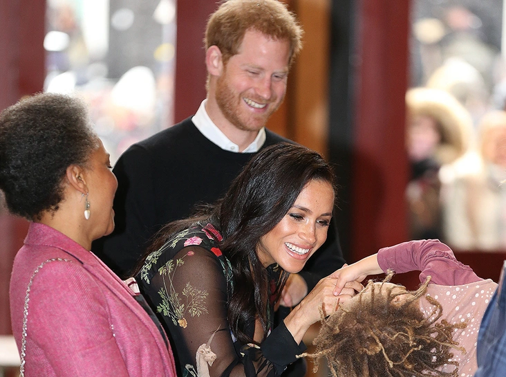 Меган решила поиграть с ребенком, и в этот момент ее выражение лица зеркально повторяет Гарри, стоящий позади жены. В ту минуту оба были полностью сосредоточены на ребенке, а их одинаковые улыбки и мягко прищуренные глаза – сигнал нескрываемой радости и удовольствия.