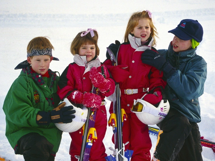 Ну а на этом очаровательном снимке младшие поколения Уэльских и Йоркских запечатлены во время традиционного отдыха в Швейцарии в 1990-х. Оба семейства просто обожали лыжи и устраивали совместные каникулы, в ходе которых кузены и кузины становились еще ближе. Обратите внимание на то, как принц Уильям пытается обнимает принцессу Беатрис за плечи, явно беспокоясь о настроении девочки.