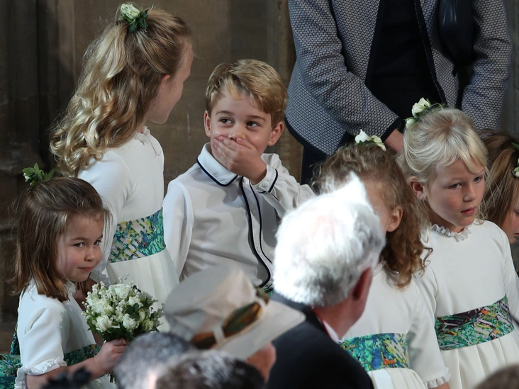 На свадьбе принцессы Евгении и Джека Бруксбэнка роль пажей и цветочниц исполняли племянники и племянницы Ее Выочества. Именно так Шарлотта и Джордж оказались рядом со своей кузиной, Саванной Филлипс. На забавном кадре будущий наследник британской короны прикрывает рот рукой, явно обрадовавшись какой-то шутке, в то время как Саванна на правах старшей присматривает за малышами. На другом фото, сделанном в этот же день на ступенях часовни, внимательная Саванна Филлипс наклоняется к принцессе Шарлотте и держит принца Джорджа за руку.