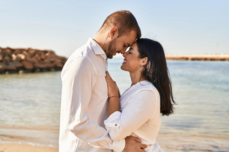 При таком типе объятий девушка обвивает руками шею мужчины, а он держит ее за талию, при этом их лица находятся напротив друг друга. Это говорит о том, что их связывают по-настоящему глубокие романтические чувства. Партнеры искренне любят друг друга.