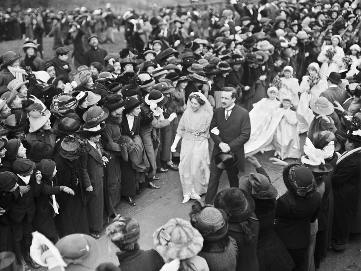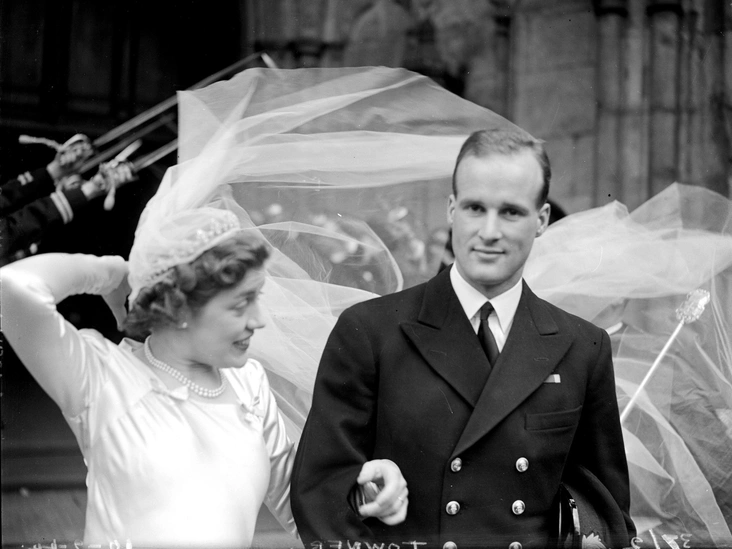 Еще одна невеста военной эпохи — правда, уже времен Второй мировой — леди Энн Спенсер. Дочь графа вышла замуж за лейтенанта Уэйка Уокера в Вестминстерском аббатстве 10 февраля 1944 года, и, похоже, это было главным светским событием сезона. На торжестве, проходившем там же, где венчались тогдашние король и королева, присутствовали их дочери — принцессы Елизавета и Маргарет (читайте также: Принц Берти и леди Елизавета: какой была свадьба родителей Королевы). Похоже, день был ветренный, и леди Энн никак не могла справиться со своей вуалью, дополнявшей ее идеальные локоны и компактную диадему.