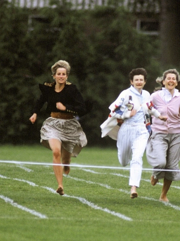 Некоторые из королевских поклонников видели снимки, на которых принцесса Уэльская бежала по лужайке в юбке и без туфель, стараясь обогнать других женщин. Это так называемый «забег матерей» в школе Уэтерби в 1991 году. Диана нарушила один из пунктов королевского протокола, запрещающий Виндзорам разуваться на публике, зато повеселила принца Гарри и удовлетворила собственный аппетит к веселью и соревнованиям. Позже младший сын принцессы сказал, что она была «насквозь ребенком». За два года до того, в 1989-м, Уэльская также приняла участие в спортивном дне принца Уильяма и тоже поучаствовала в забеге.