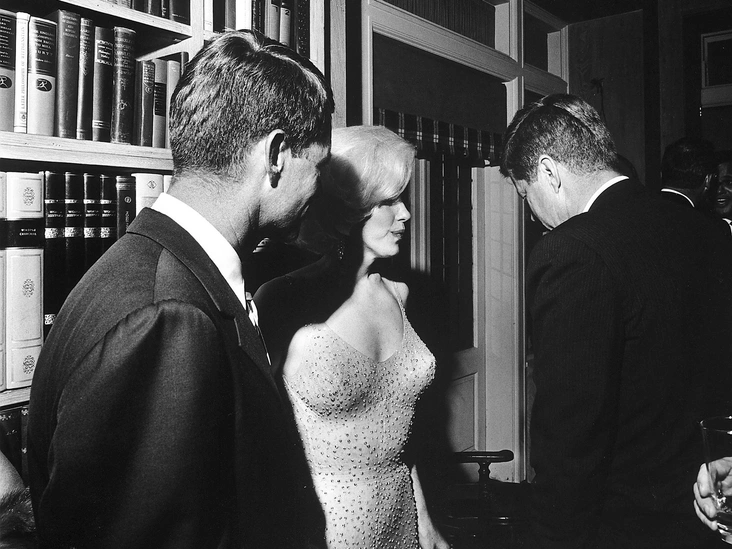 По словам Спады, актер Питер Лоуфорд познакомил Монро с Кеннеди в 1954 году. Но когда Кеннеди устал от нее, он «передал ее» своему брату. По словам Джеймса, это произошло весной 1962 года, а свидетели утверждают, что слышали тревожную запись из прослушиваемого дома Монро в ночь ее смерти, на которой слышны голоса Лоуфорда, разгневанного Роберта и кричащей Монро.
