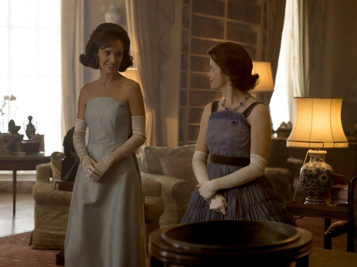 Во втором сезоне «Короны» в Букингемский дворец приезжает американская президентская чета — Джон и Джеки Кеннеди. В этом эпизоде показано, что Королева невзлюбила очаровательную миссис Кеннеди практически с первого взгляда. Однако после личной беседы с супругой американского президента Елизавета II смягчилась. Женщин сблизил тот факт, что они обе чувствовали себя словно птицы в позолоченных клетках. Но конфликт разжегся с новой силой, когда Ее Величеству сообщили, в каких выражениях Джеки описывала Букингемский дворец и саму Королеву на вечеринке, состоявшейся на следующий день. Позже миссис Кеннеди принесла Елизавете II свои извинения.