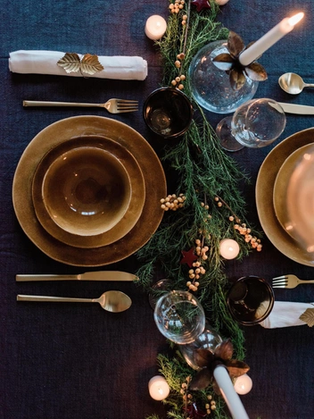 Очень важно вовремя остановиться и не переборщить с декорированием в творческом порыве. Все-таки за столом в первую очередь должно быть удобно, поэтому укрыть его сплошным слоем еловых веток и присыпать сверху блестками — не лучшая идея. Заранее заготовьте побольше элементов декора и спокойно выбирайте из них, примеряя одно за другим. Именно поэтому сервировкой лучше заниматься не в последний момент — можно оформить стол уже утром, чтобы перед приходом гостей осталось только зажечь свечи.