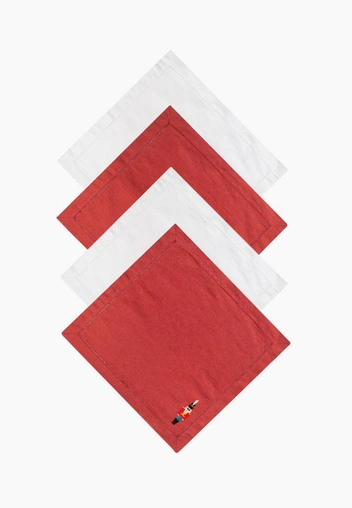 Вместо того, чтобы ставить каждую тарелку на традиционную вышитую салфетку или специальную подставку, используйте небольшие индивидуальные подносы. Хорошо смотрятся алюминиевые или стилизованные под серебро. Их можно украсить одинаково, а можно создать для каждого гостя разную композицию. Например, украсить кольца для салфеток еловыми ветками и ягодами (читайте также: Как выбрать елку на Новый год?).