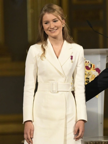 Главная виновница торжества появилась перед гостями в элегантном белом пальто и бежевых туфлях. Ее утонченный и лаконичный образ понравился модным обозревателям, которые принялись писать о том, что у королевы Матильды, признанной иконы классического стиля, растет достойная преемница. Выступая перед публикой, юная принцесса была немногословна, но держалась вполне уверенно. «Восемнадцать лет — это начало взрослой жизни, — произнесла она. — Страна может рассчитывать на мою преданность».