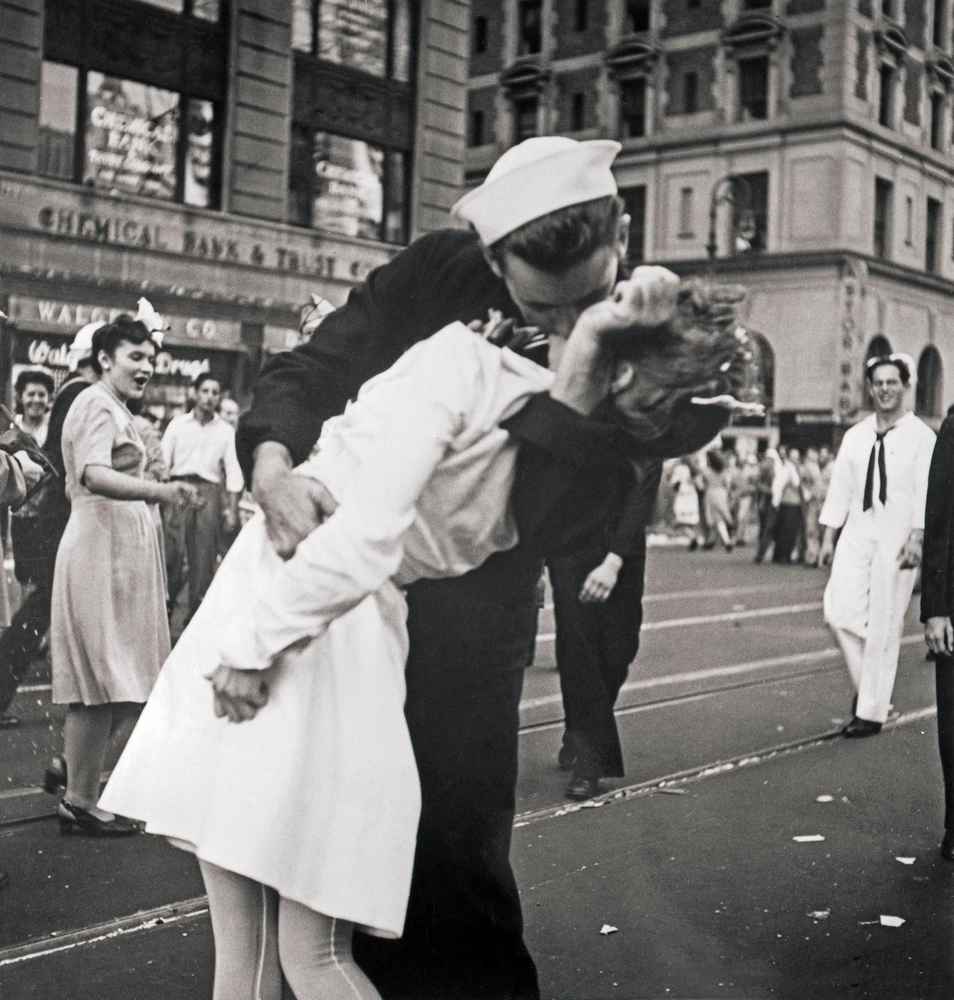 Особенно в этот день радовались моряки, которые представляли главные силы на Тихоокеанском фронте. Поэтому большинство народа на Таймс-сквер были ожидаемо облачены в отличительные полосатые кофты. И мужчины, и женщины ликовали от осознания, что страшные дни позади, а значит в мире снова есть место для любви во всех ее проявлениях. Поэтому не стоит удивляться, что 14 августа 1945 года целовался и обнимался практически весь Нью-Йорк.