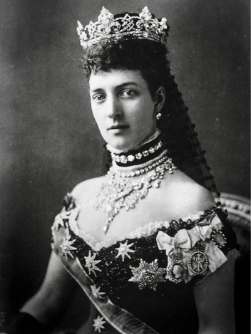 Дочь короля Дании Кристиана IX и сестра короля Греции Георга I вышла замуж за британского принца Альберта Эдварда, наследника королевы Виктории, в 1863 и стала принцессой Уэльской. Ее статус изменился в 1901-м, когда Эдуард VII взошел на престол, и его жена стала королевой-консортом. Уэльская была очень популярна и служила иконой стиля среди подданных. Сестра Александры принцесса Дагмар вышла замуж за русского цесаревича, ставшего императором Александром III, и известна как императрица Мария Федоровна.